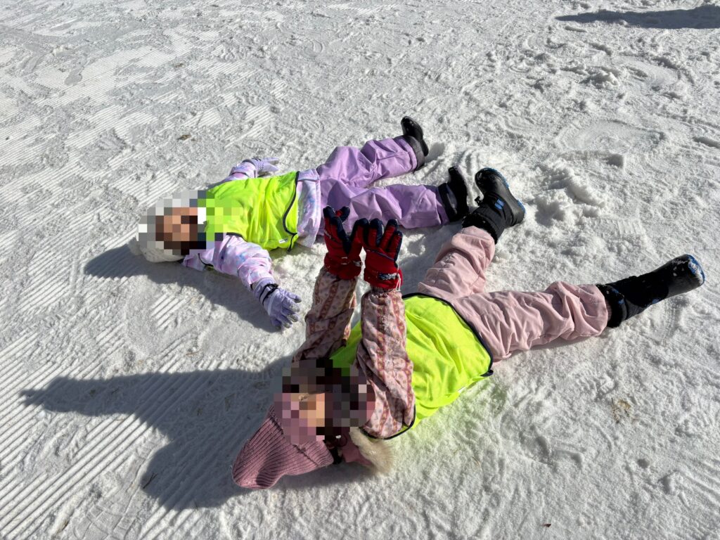 雪遊びでは、雪の上で寝転がったり、雪だるまを作ったり・・・普段味わうことができない雪を思う存分楽しみました!