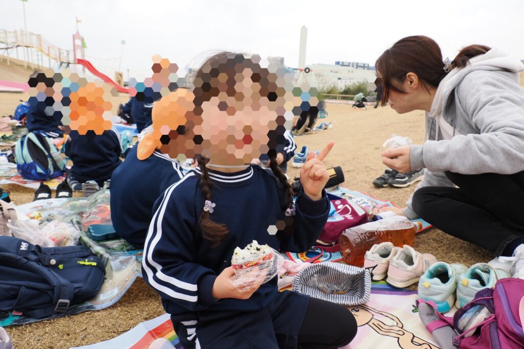 たくさん遊んだあとはお家の人に作ったもらったおにぎりでパワーチャージ!
