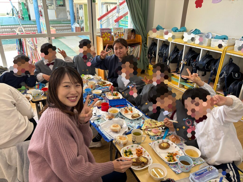 幼稚園の先生たちも教室に集まり、和やかな雰囲気の中で美味しい給食をいただきました☺