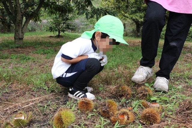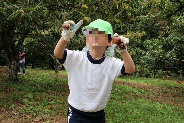 手のひらいっぱいの栗をもって、たくさん拾うことができました😆✌️