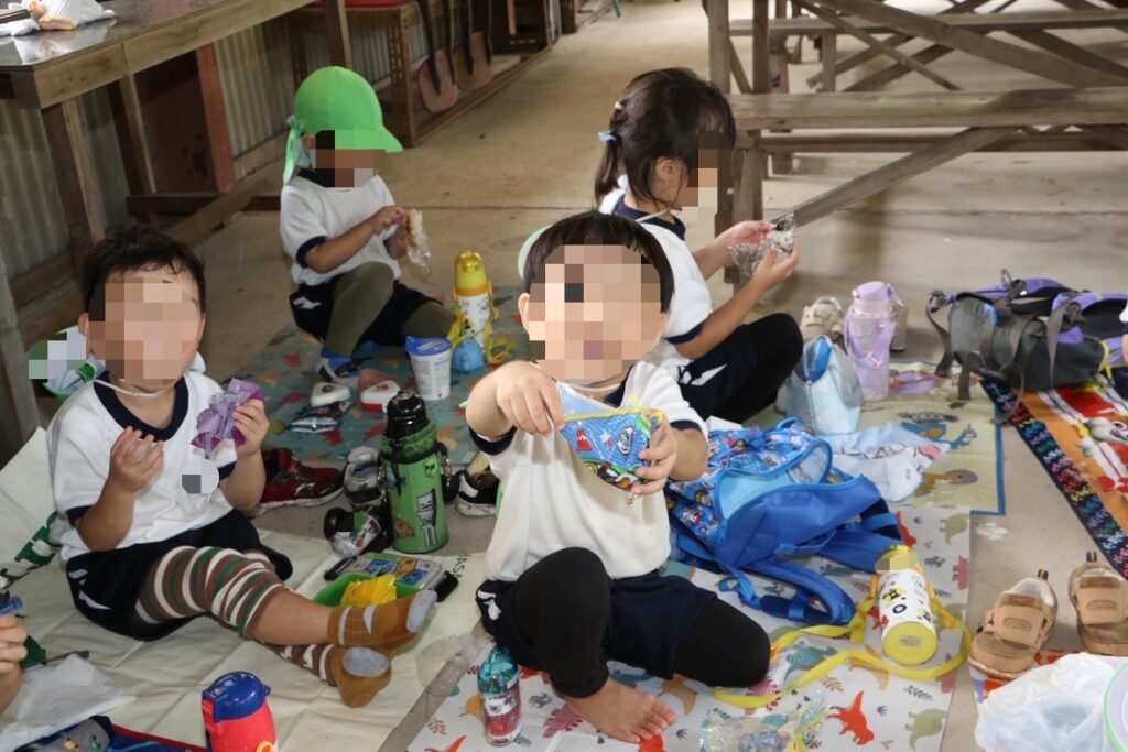 おにぎりを食べて、お土産もたくさんもらって大満足の様子でした✨