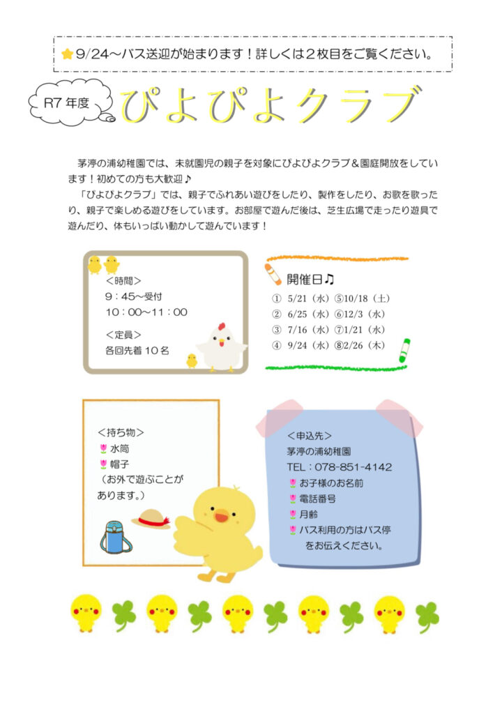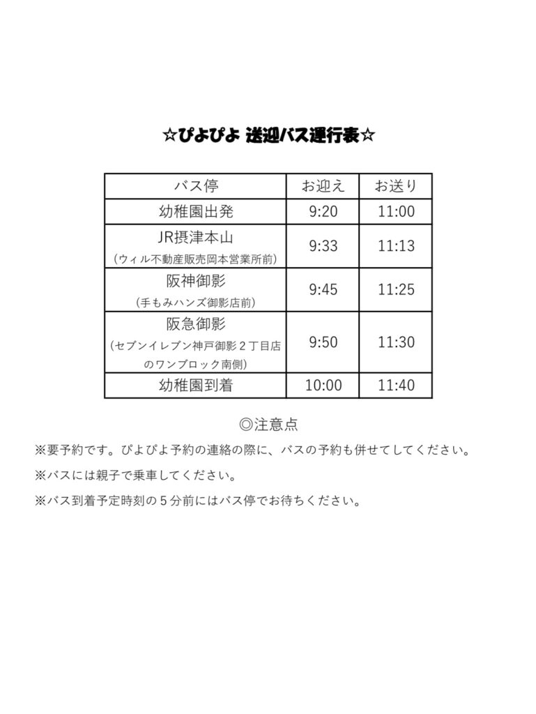 ぴよぴよクラブ(未就園児向け親子イベント)の、バス送迎が始まります。