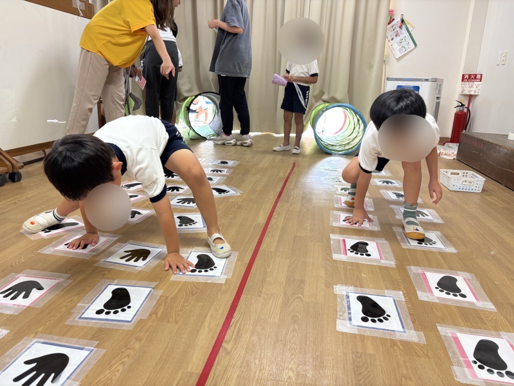 足形と手形に合わせて、歩くのは少しむずかしかったけど、上手にできました!
