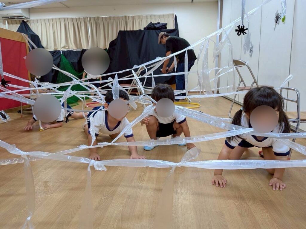 スパイダーマンでは、蜘蛛の巣をくぐって鈴に当たらないようにゴールを目指しました⭐️
