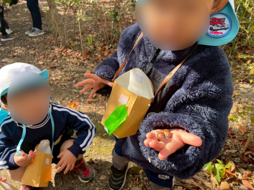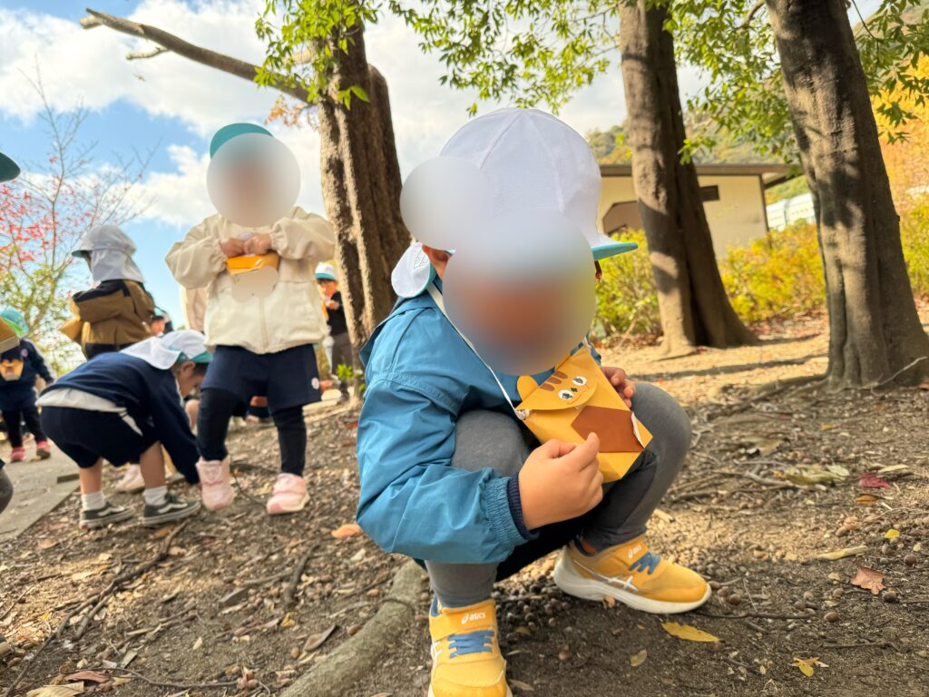 公園にはどんぐりがいっぱい!!みんなが作ったどんぐりバックいっぱいにどんぐりを拾ったよ⭐︎