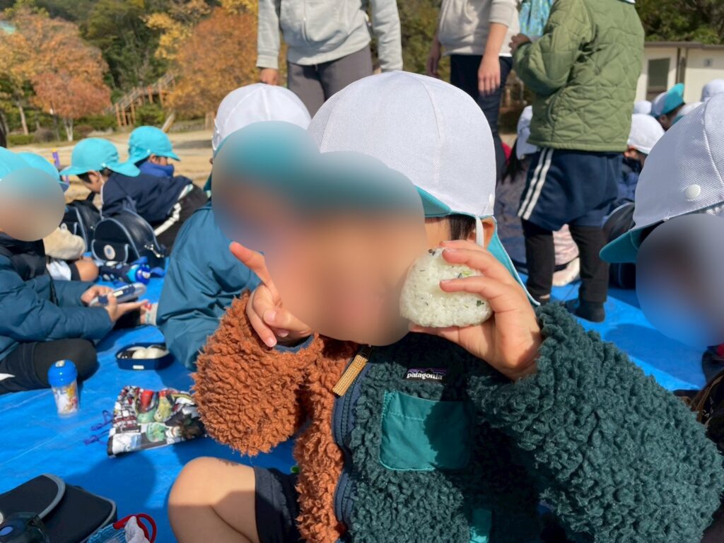 どんぐりを拾った後は、おにぎり弁当の時間🍙 美味しかったね💖