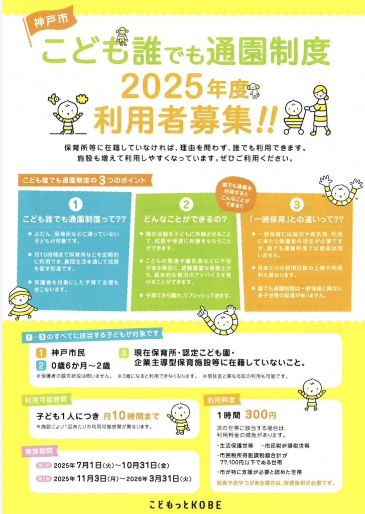 神戸市こども誰でも通園制度の利用者募集のお知らせです。
